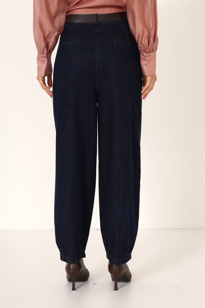 Denim blu scuro dalla silhouette sofisticata, caratterizzato da pences marcate che regalano profondità e movimento al capo. La ripresa in fondo alla caviglia crea una linea affusolata che valorizza la figura, perfetto per chi ricerca un fit moderno e versatile. Un classico intramontabile che si adatta a ogni occasione, dal casual al più elegante.