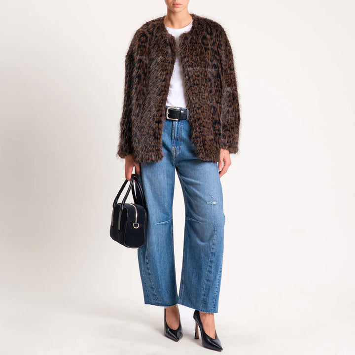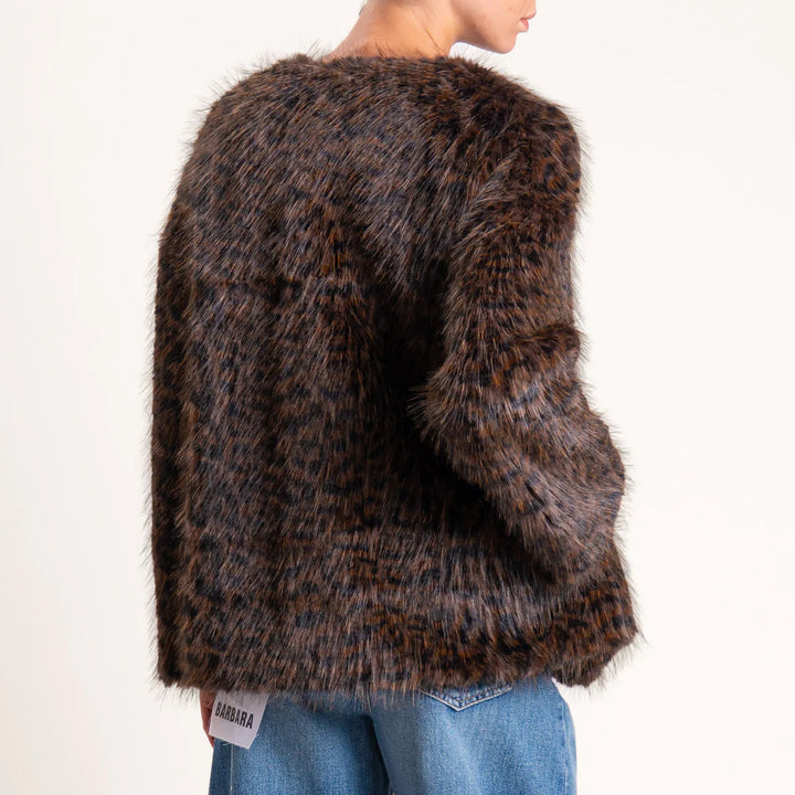 Philia Loft è una pelliccia ecopelliccia con stampa animalier che unisce stile sofisticato e consapevolezza ecologica. Realizzata al 100% in poliestere, offre la morbidezza e l'eleganza di una vera pelliccia senza compromessi etici. La chiusura con gancio garantisce praticità, mentre la fodera interna assicura comfort e durabilità. Perfetta per chi ricerca un capo di tendenza che non rinuncia ai valori di sostenibilità. La modella di 175 cm indossa la taglia XS, indicazione utile per valutare la vestibilità.