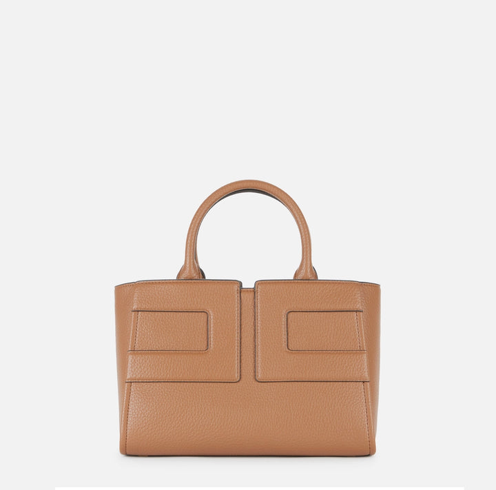 Borsa tote media realizzata in materiale sintetico effetto pelle. Dalla shape morbida e compatta, ha manici tubolari. Si distingue per i dettagli cuciti con logo in tono che incorniciano la parte superiore dell'accessorio.