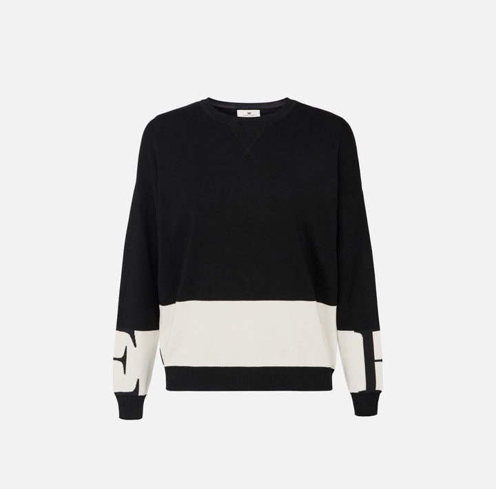 Maglia in viscosa dalla vestibilità regular. Con girocollo ampio, si distingue per i loghi intarsiati in viscosa lucida sulle maniche e sul retro, a creare dei decisi effetti color block.