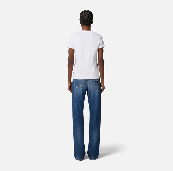 Maglietta a maniche corte in jersey di cotone. Si distingue per il doppio logo ricamato a rilievo sul davanti, in tono per un raffinato equilibrio cromatico. Vestibilità slim.